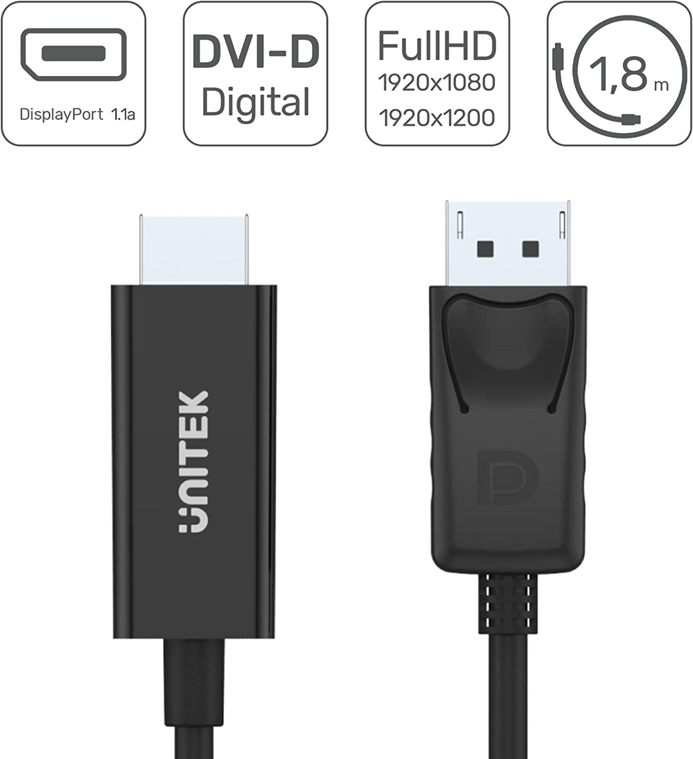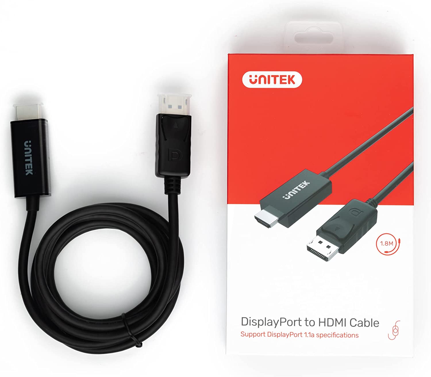 1.8M DisplayPort to HDMI Cable. 1080P Full HD Cable, Male DisplayPort to Male HDMI Cable, HDMI Full HD up to 1920x1200 resolution, Audio & Visual pass-through simultaneously. 1 YEAR WARRANTY.