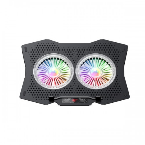 The Havit F2072 RGB Gaming Cooling Pad features Double 12CM large fans, color LED lighting effect, efficient and fast heat dissipation. It is made of ABS material. It is compatible with laptops under 17 inches. It can be used with a 9-17 inch laptop. It has a wind speed of 1000-1200RPM and the noise level is between 17-22dBA. The 7-level angle is adjustable to meet different usage habits. It has an operating angle of 6.5-45 degrees. It comes with a 2x USB 1.1 interface. It also has a 60cm long data cable. The Havit F2072 has a 1-year warranty.